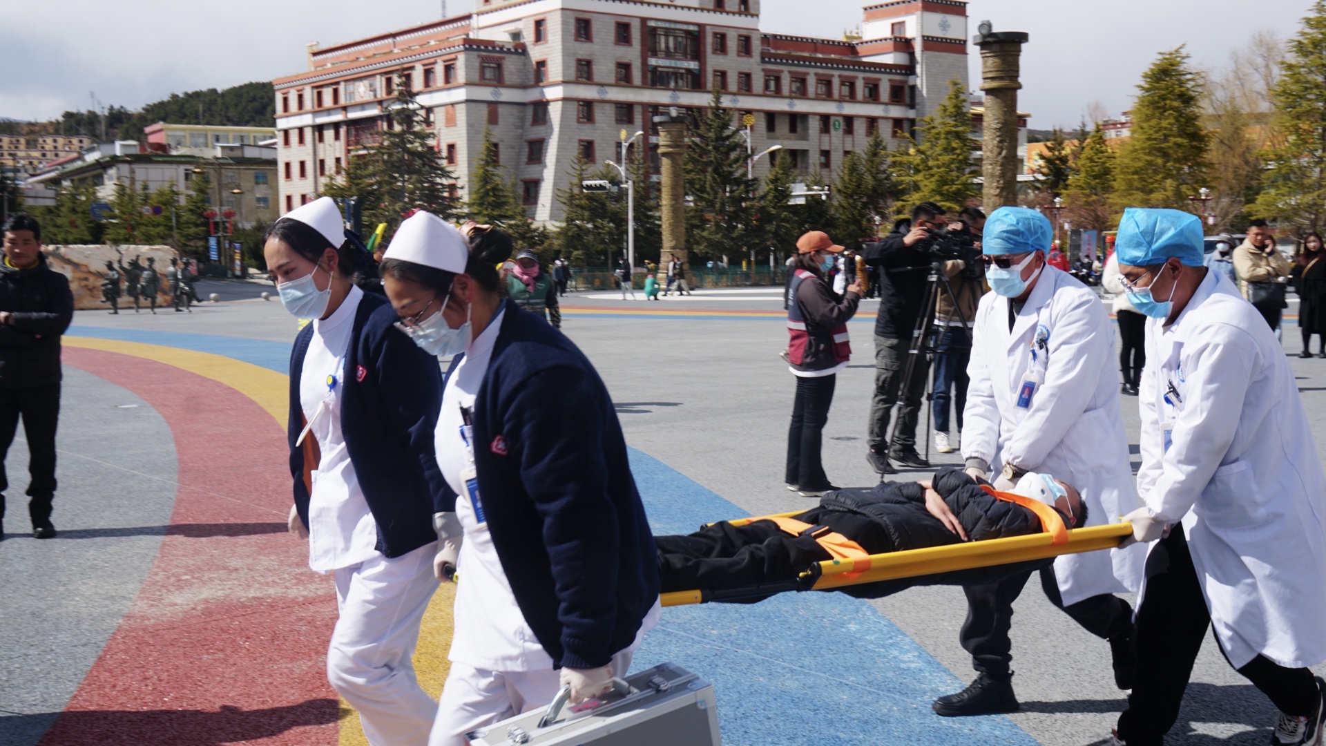 香格里拉市地震應(yīng)急演練現(xiàn)場