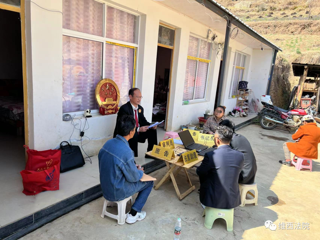 2023年3月14日,為減輕當(dāng)事人訴累,提高辦案質(zhì)效,立案庭干警一行4人到維西縣保和鎮(zhèn)蘭永村的當(dāng)事人家中進行巡回開庭。[詳細] -