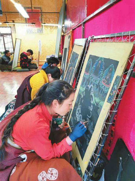 “現(xiàn)在,一個(gè)年輕的唐卡畫師,一幅大型作品就能賣出上百萬(wàn)?!奔侮?yáng)樂(lè)住表示,雖然現(xiàn)在有了很多批量化生產(chǎn)的唐卡產(chǎn)品,但堅(jiān)持傳統(tǒng)材料和工筆技藝虔心繪制的唐卡作品,依然受到市場(chǎng)的高度認(rèn)可,“有些畫師的訂單已經(jīng)排到數(shù)年以后了。”目前,壤塘非遺項(xiàng)目產(chǎn)生的經(jīng)濟(jì)效益有2000萬(wàn)元左右,對(duì)于偏遠(yuǎn)牧區(qū)來(lái)說(shuō),這是一筆可觀的收入,同時(shí)帶動(dòng)了3000余人就業(yè),創(chuàng)造了一個(gè)立足中華優(yōu)秀傳統(tǒng)文化脫貧致富的成功案例。