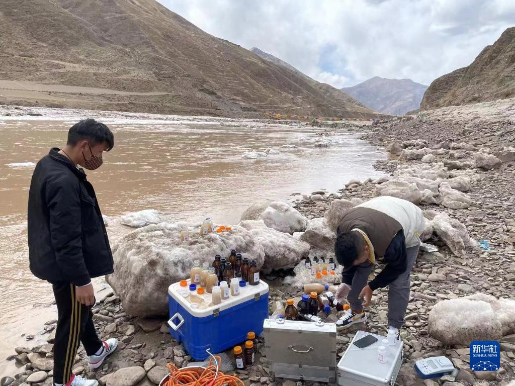 2022年4月11日 ,工作人員在國(guó)控直門達(dá)斷面進(jìn)行水質(zhì)采測(cè)分離工作。(受訪單位供圖)
