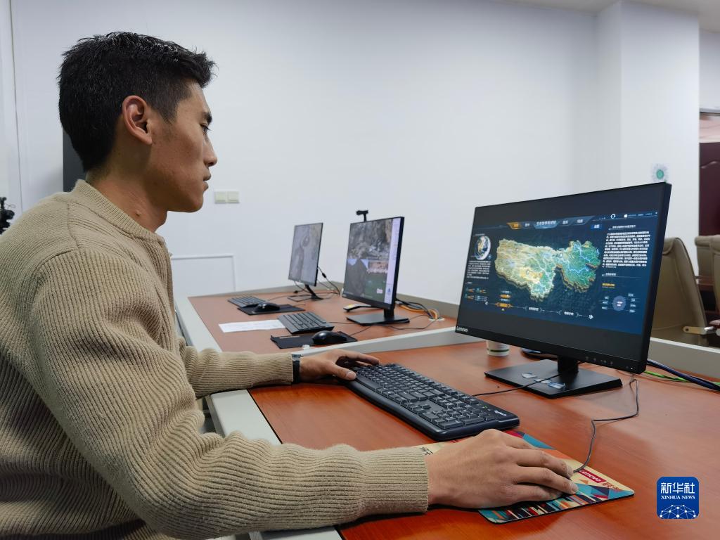 3月23日,工作人員正在操作“江源之窗”視頻觀測(cè)系統(tǒng)。新華社記者 柳澤興 攝