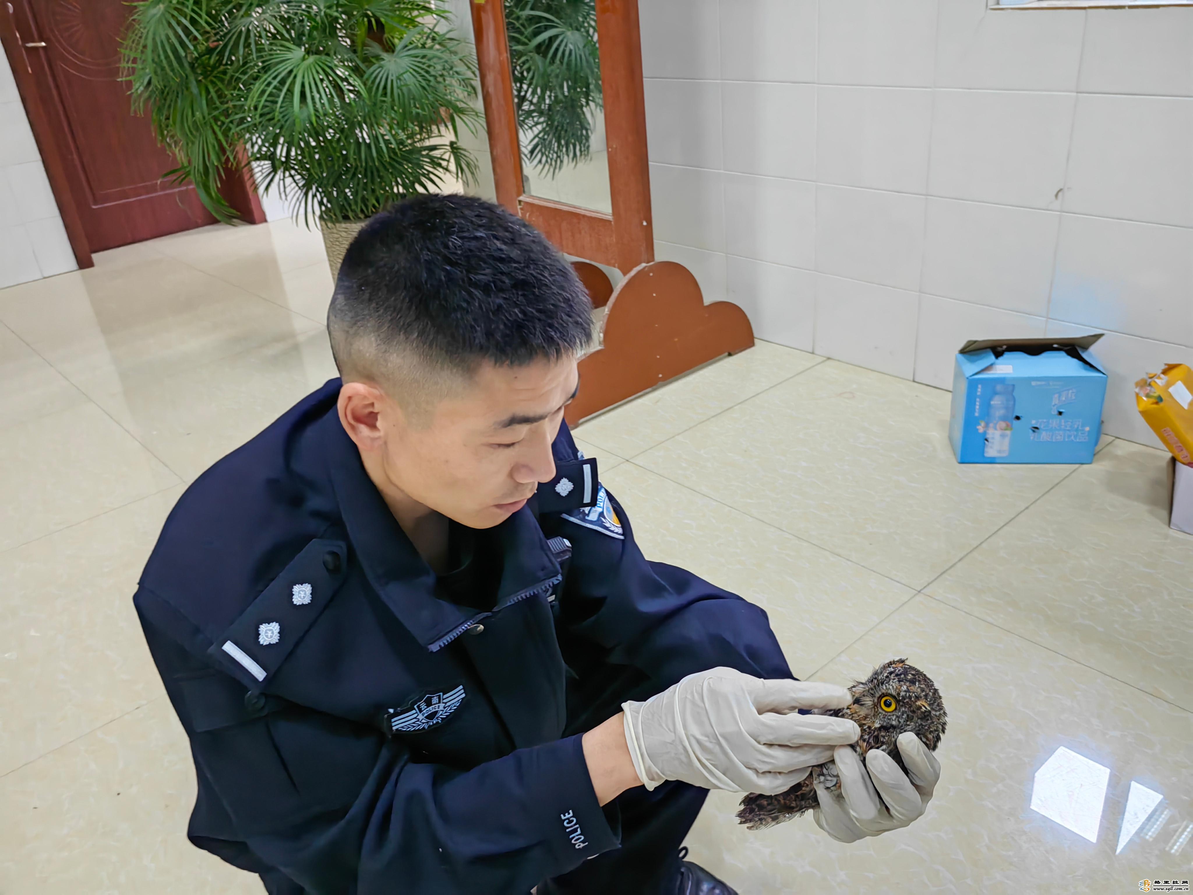 經(jīng)民警仔細(xì)查看并咨詢(xún)相關(guān)林業(yè)專(zhuān)業(yè)人員,確定這是一只紅角鸮,屬?lài)?guó)家二級(jí)野生保護(hù)動(dòng)物,因部分羽毛是濕的,故無(wú)法飛行。當(dāng)晚,民警待其羽毛干透后再次進(jìn)行了仔細(xì)檢查,未發(fā)現(xiàn)體表傷,具備放生條件,于是民警將該紅角鸮帶至野外進(jìn)行了放生。