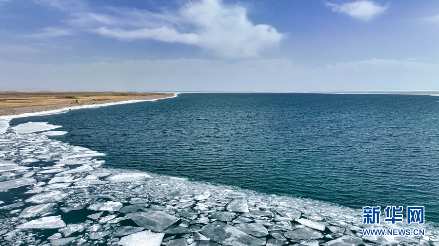 這是4月8日拍攝的青海湖開湖景觀(無人機(jī)照片)。新華網(wǎng) 宋忠勇 攝