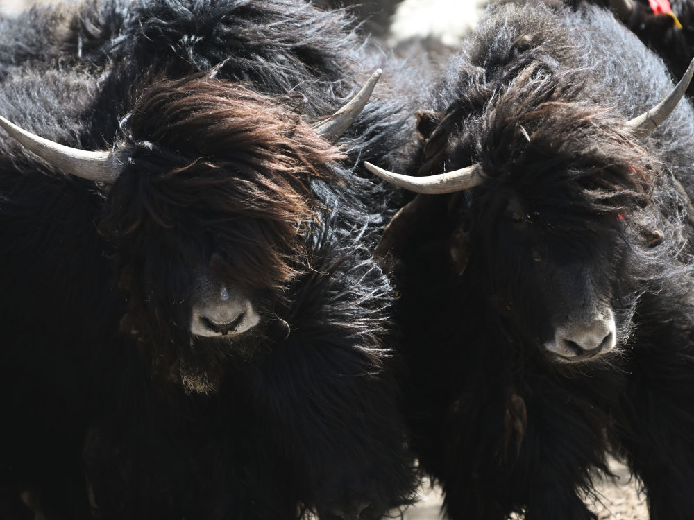 這是4月14日拍攝的剛察縣環(huán)湖型牦牛良種繁育基地內(nèi)的環(huán)湖型長毛牦牛。新華社記者 張龍 攝
