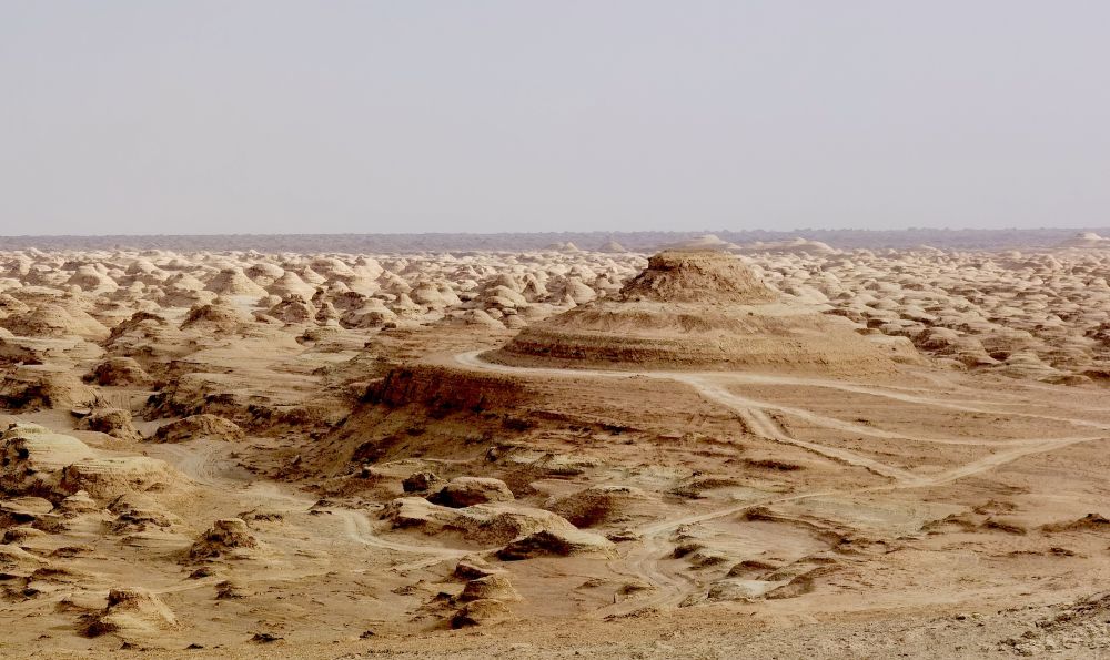 這是4月8日在“火星一號(hào)”公路旁拍攝的雅丹群。新華社記者 顧玲 攝