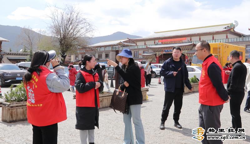 “五一”假期期間,香格里拉市文旅青年志愿服務(wù)者在該市各個(gè)景區(qū)景點(diǎn)雷鋒志愿服務(wù)站為游客提供游覽咨詢(xún)、宣傳引導(dǎo)、便民應(yīng)急等服務(wù)。(魯茸追瑪 和麗瑤 攝影報(bào)道)