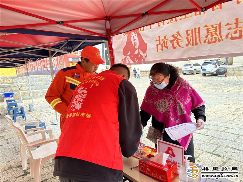 志愿者融入五一文明服務風景線。五一假期,香格里拉市青年志愿者堅守一線崗位,用無微不至的服務,接待好每一位游客。