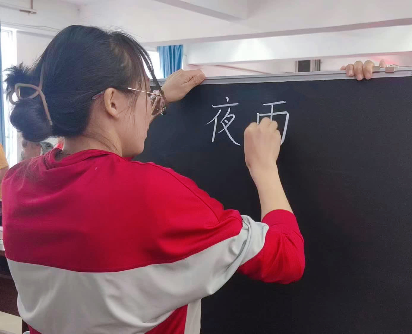 比賽現(xiàn)場,教師們認(rèn)真地書寫著每一筆畫、每一個漢字,所完成的作品或清秀雋永,或遒勁有力,或飄逸灑脫,各具特色。
