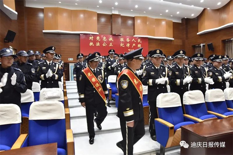 迪慶州公安局會議室內(nèi),全體民警身著警禮服已等候多時(shí)。