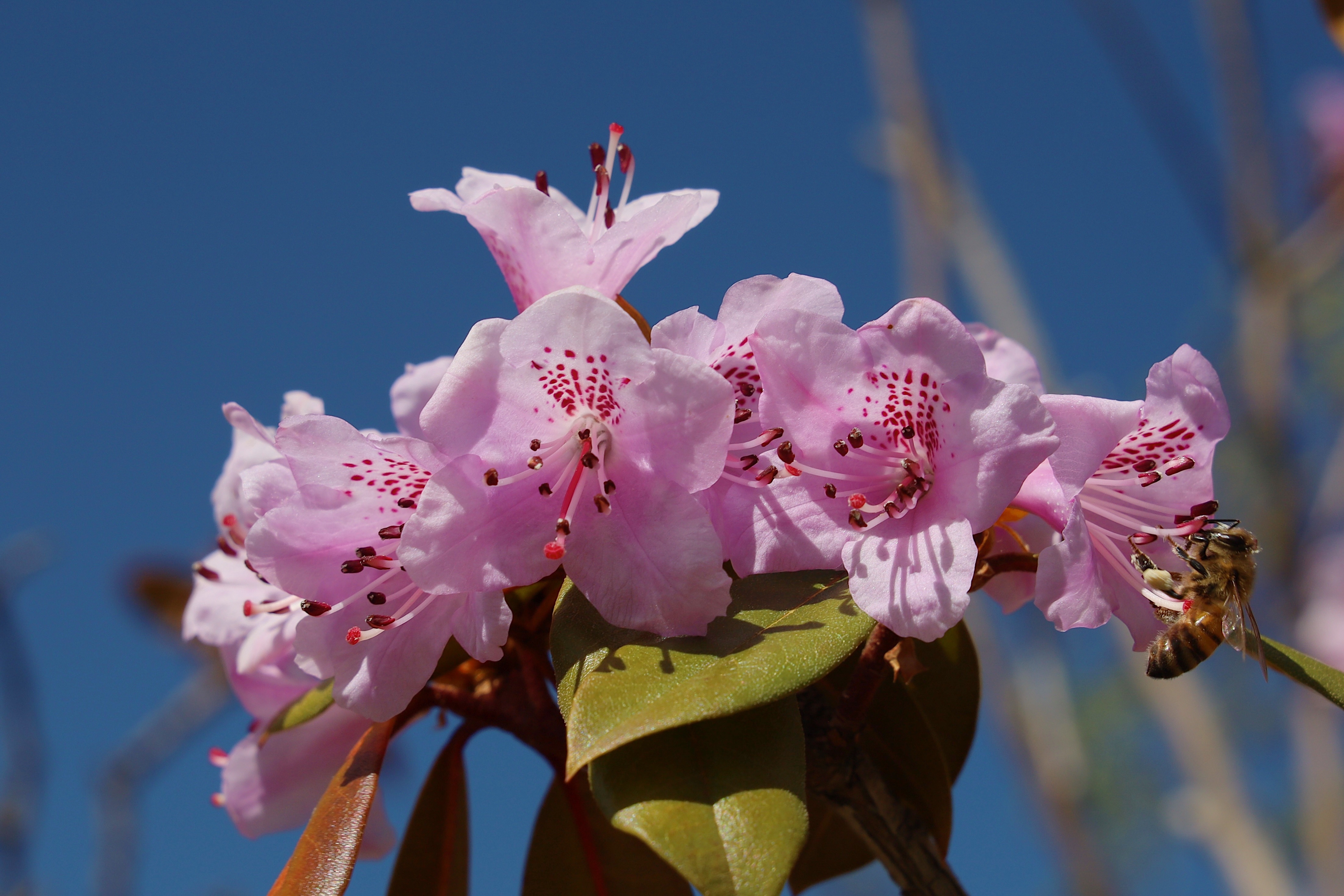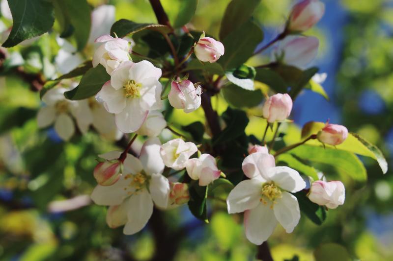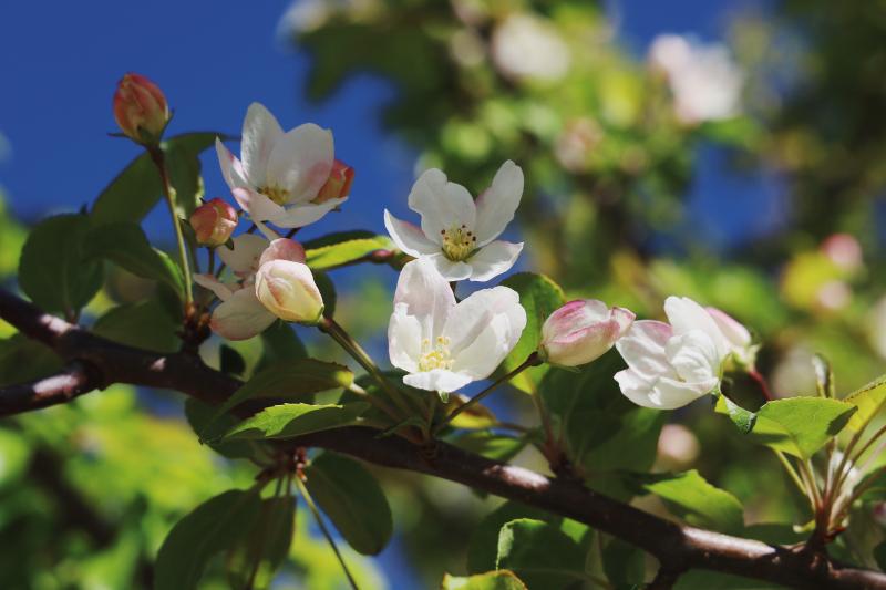 5月,香巴拉公園內(nèi)各色花卉競相開放,天藍更襯花紅,杜鵑花、海棠花、櫻桃李花在光影下變幻著不同的美。微風(fēng)輕拂,花色明亮,季節(jié)的故事在這一片片花色中演繹開來。