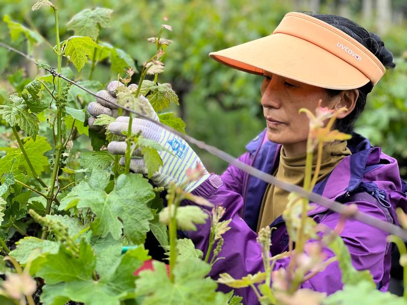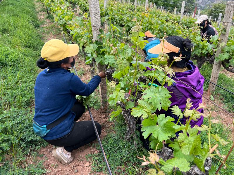 為不斷拓寬農(nóng)戶(hù)增收路子,公司與當(dāng)?shù)馗裆C范淦咸逊N植專(zhuān)業(yè)合作社合作,采取“租賃+務(wù)工”模式,按租賃每畝土地30個(gè)工,每個(gè)工120元的方式,為當(dāng)?shù)卮迕裉峁┬藜簟⒉烧?、釀酒等各?lèi)就業(yè)崗位。在此基礎(chǔ)上,村黨總支積極聯(lián)系香格里拉酒業(yè)股份有限公司,通過(guò)訂單收購(gòu)方式,在阿東村下片四個(gè)村民小組收購(gòu)赤霞珠,霞多麗,西拉等品種,從2012年至今每年以3.6元每公斤收購(gòu),戶(hù)均收入達(dá)12910元。