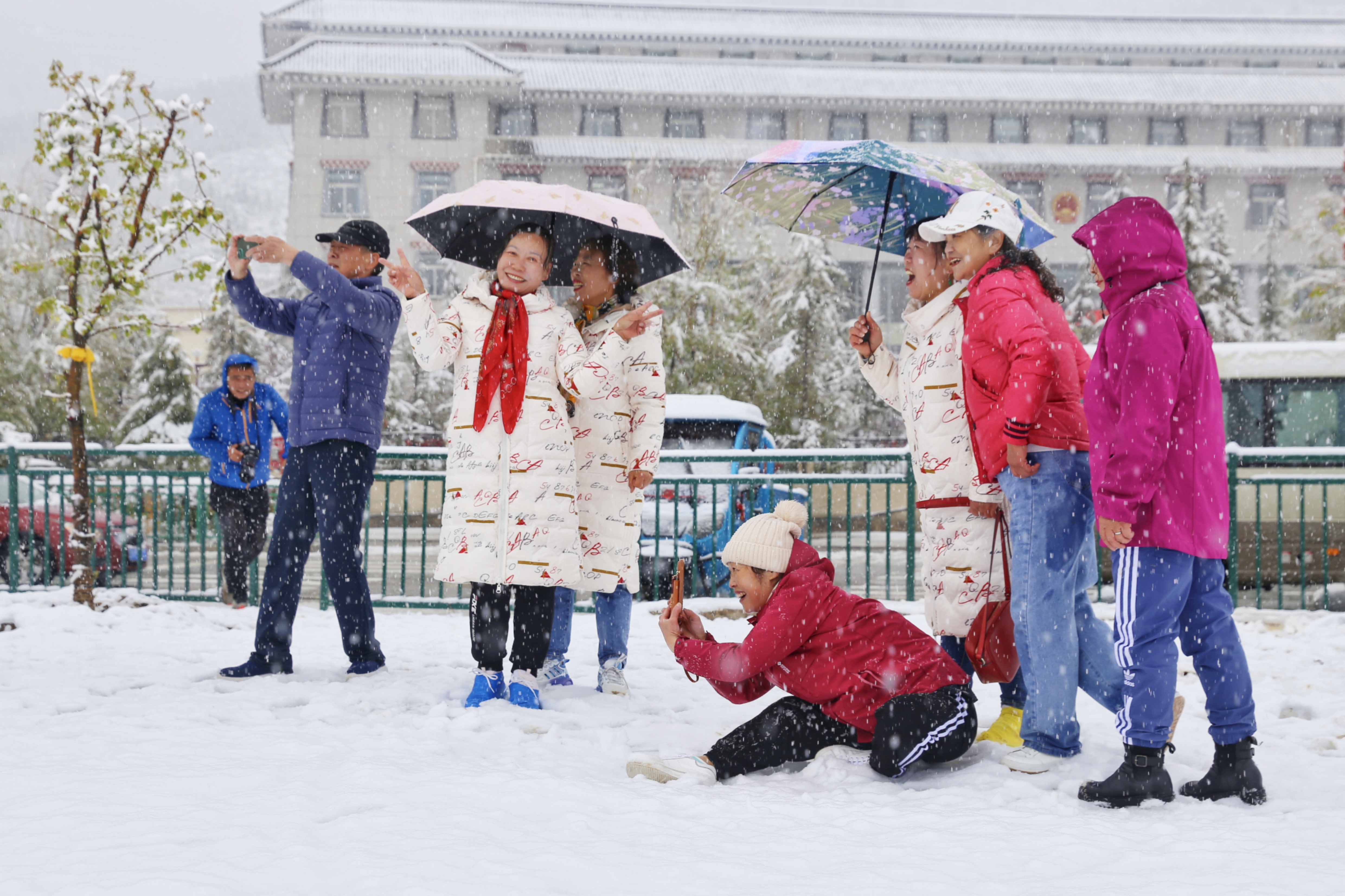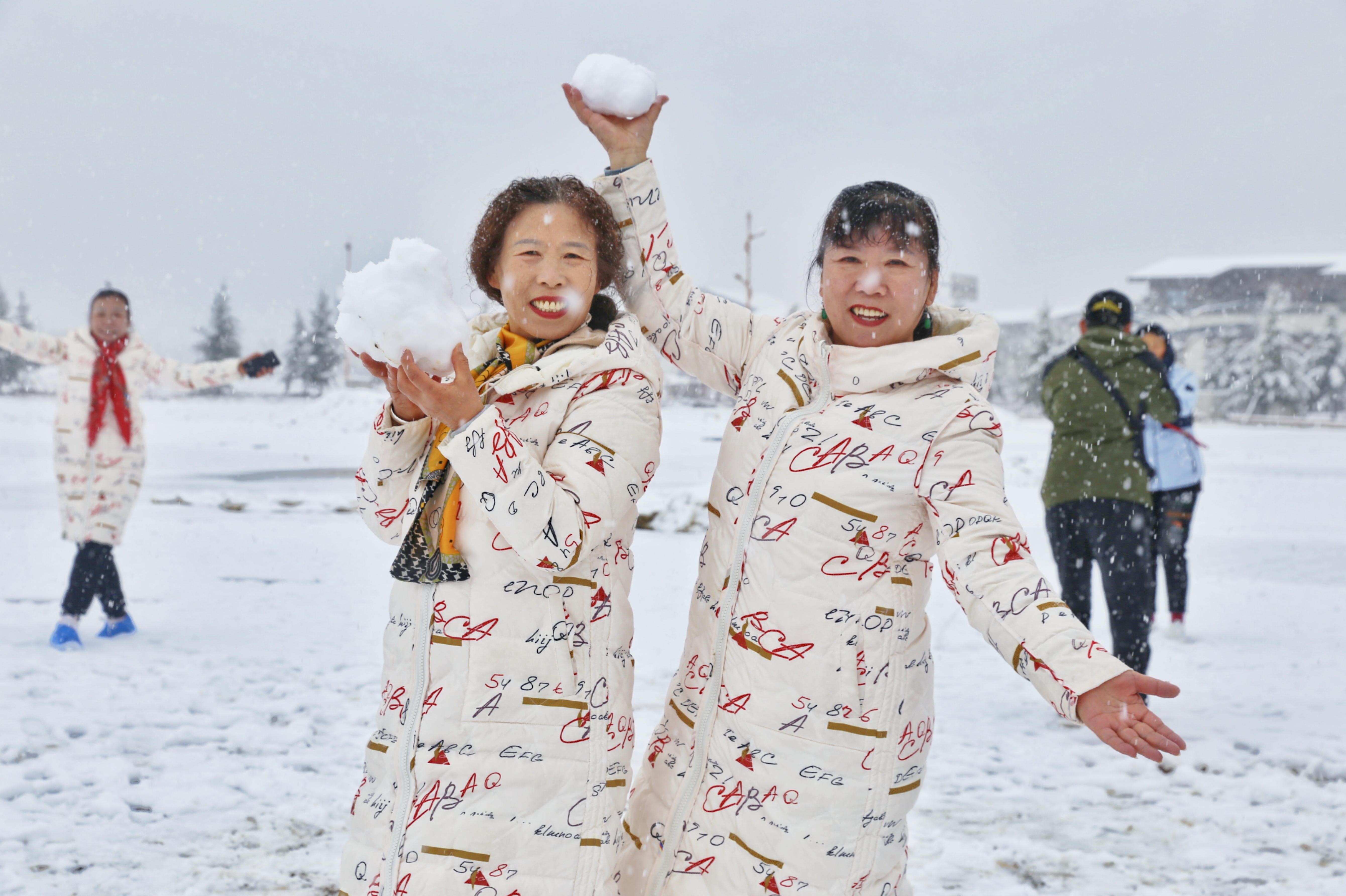 5月15日,香格里拉迎來一場夏雪,大雪紛飛的雪地中一群來自貴州的“嬢嬢團(tuán)”正興奮的玩雪、拍照,“太有意思了,五月也能玩到雪,很難得。”今年65歲的劉嬢嬢告訴記者,她們?cè)谙愀窭锢瓮嫒奶炝耍裉鞙?zhǔn)備返程,出城路上被雪景吸引便索性再留出半天時(shí)間看雪。雪地中的嬢嬢們精氣十足,捏雪球、劈腿、下腰、打滾……大家紛紛擺出自己最拿手的pose拍照記錄下這令人驚喜的美景。