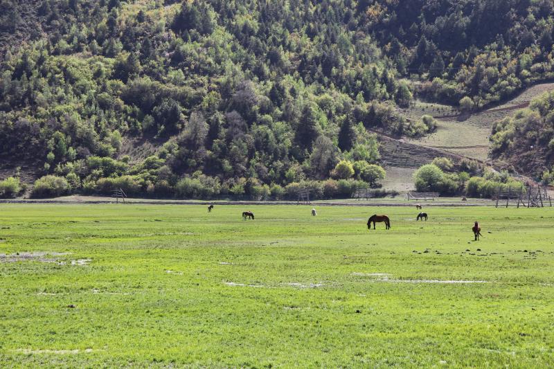 伴隨著立夏過后的第一場雨雪,迪慶高原綠意更濃。納帕海湖畔更添一分高原夏日氣息,碧藍的湖水、翠綠的草原和自由行走在草原上的牛羊是高原獨特的風(fēng)景線。深深吸引著來自五湖四海的游人駐足觀賞。雖然“五一”假期已過,但前往納帕海游玩的游客并沒有減少,不少游客表示是特意前往這里感受草原風(fēng)光、拍照留念的。