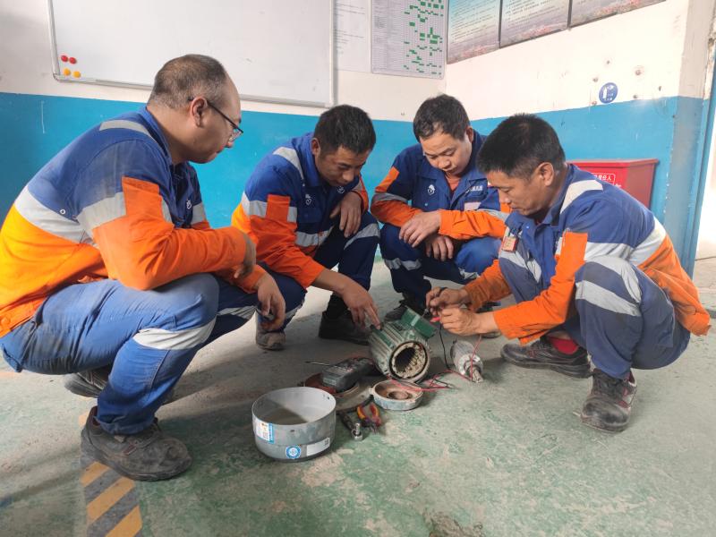 華新水泥(迪慶)有限公司電修班組現(xiàn)有電修人員10人,其中僅有3人為建廠時期就入廠的老員工,電修班組成員多為中專及小學學歷。許多員工剛剛進入班組的時候都是“門外漢”,在學歷參差不齊、技術良莠不一的情況下,班組把“傳幫帶”作為提升技能的關鍵一招,堅持“老帶新幫助”“一對一指導”“手把手教學”,從一個零件到一個操作流程,從規(guī)章制度到安全生產(chǎn),“師傅們”都耐心細致、毫無保留地傳授。而“徒弟們”遇到解不開的問題和現(xiàn)場工作中的難題,都虛心地向師傅們請教。正是在這種濃厚的“傳幫帶”氛圍下,班組的技術攻堅能力突飛猛進。