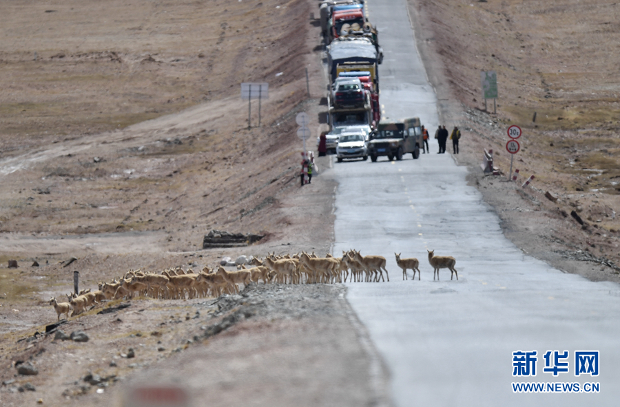 藏羚羊“過馬路”,車輛請(qǐng)注意!