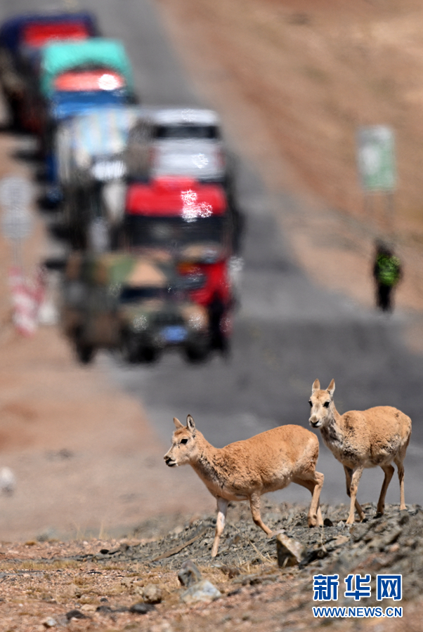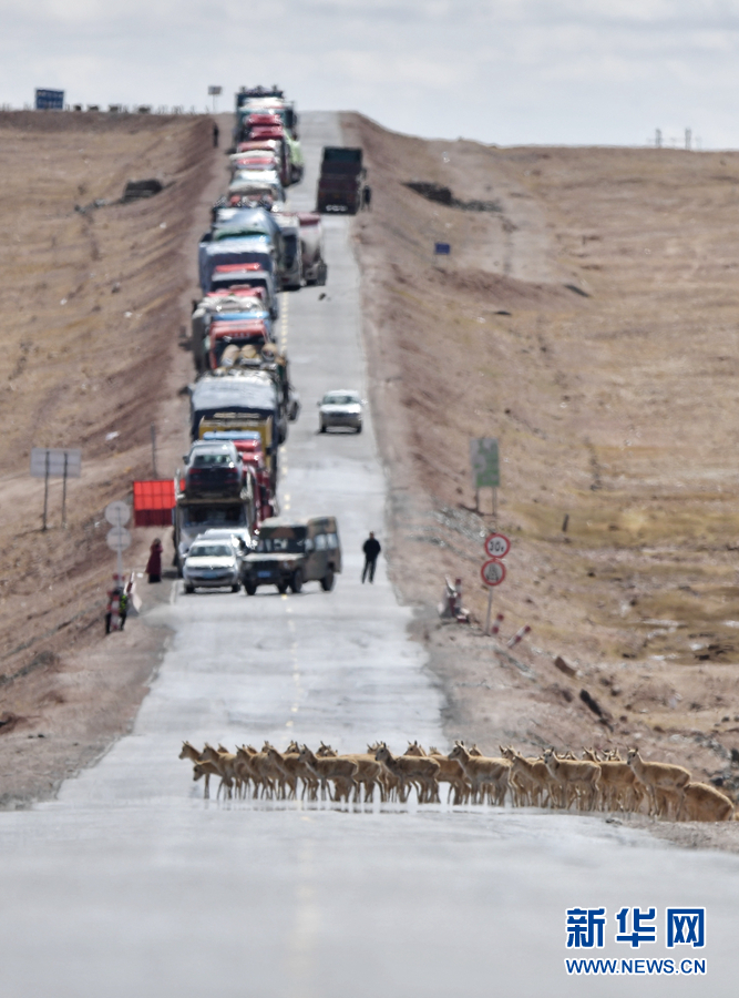一組高清大圖,新華社記者帶你一睹藏羚羊“過馬路”。