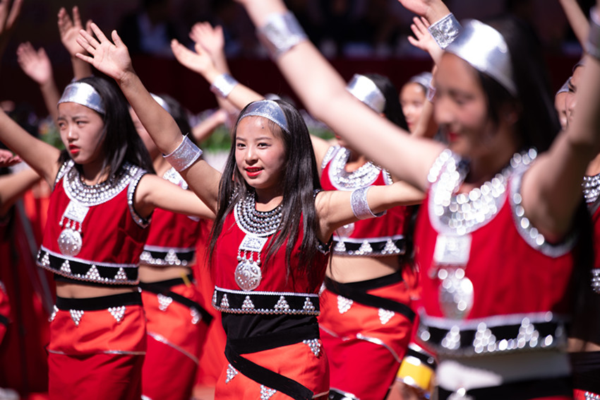 5月28日,雅江縣第五屆中小學生校園文化藝術節(jié)展演活動在呷拉鎮(zhèn)片區(qū)寄宿制小學開演。表演分童心向黨跟黨走、陽光體育伴成長、民族團結(jié)一家親三個篇章,共有18個代表隊、2000余人參演。師生們隨著動感的節(jié)拍歡快起舞,用精彩的表演生動展現(xiàn)了昂揚的革命精神、繽紛的青春夢想,贏得一波又一波熱烈的掌聲。圖為展演活動現(xiàn)場。
