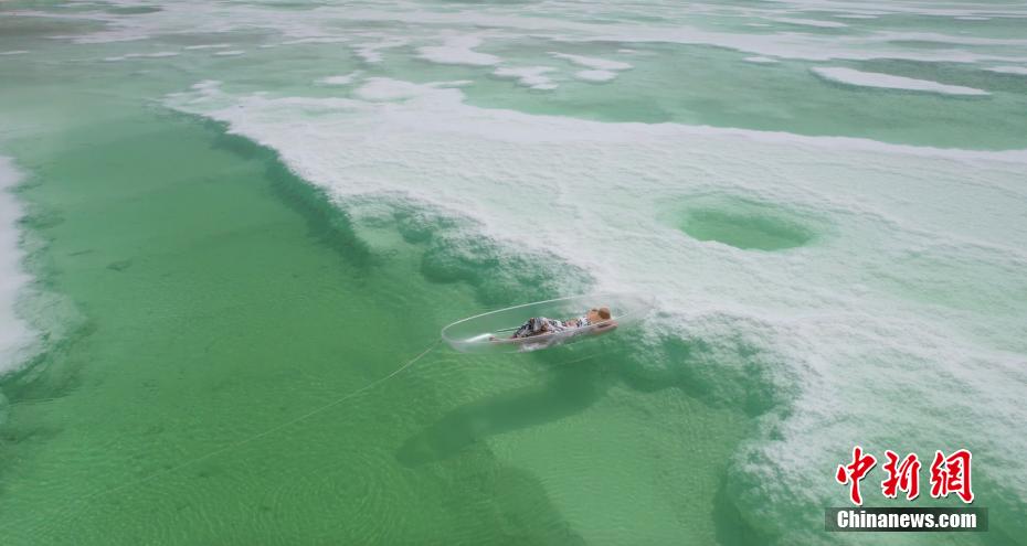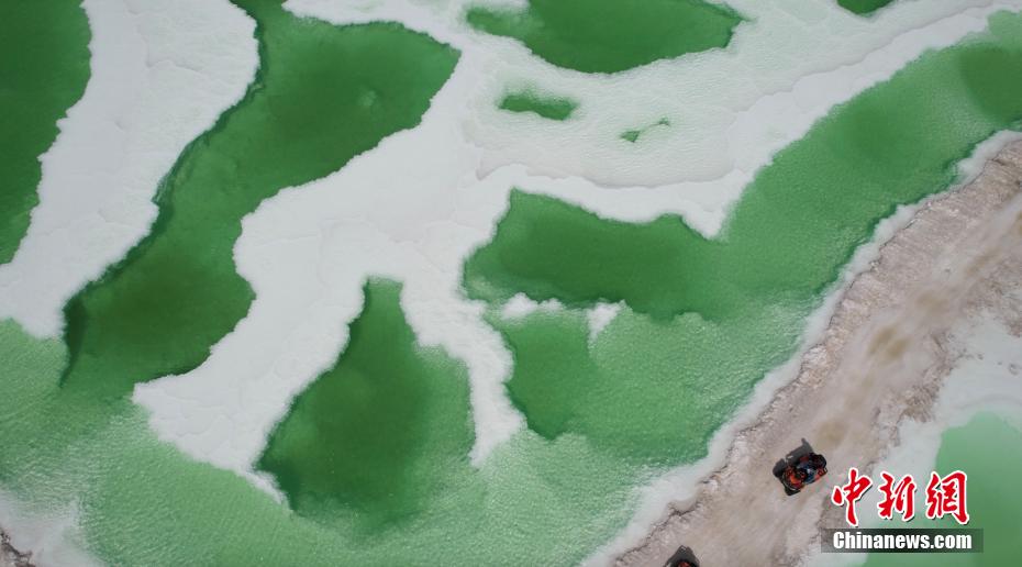 夏日,位于青海海西州茫崖市花土溝鎮(zhèn)的翡翠湖宛如色彩絢麗的油畫被描繪在蒼茫的柴達(dá)木盆地上,淡青、翠綠、深綠色的湖水如碎玉散落在大漠戈壁上,充滿生機(jī)。茫崖翡翠湖南依昆侖山,北靠阿爾金山,總面積約26平方公里,屬于硫酸鎂亞型鹽湖,由于所含礦物質(zhì)濃度的不同,致使湖面顏色深淺不一。18日,由中新社青海分社,青海省海西州茫崖市委、茫崖市人民政府共同主辦的“赴蒼茫之崖品人間煙火”青海·茫崖2023美食大會在茫崖市正式啟動。近日,活動團(tuán)隊(duì)來到茫崖翡翠湖進(jìn)行拍攝采風(fēng)。