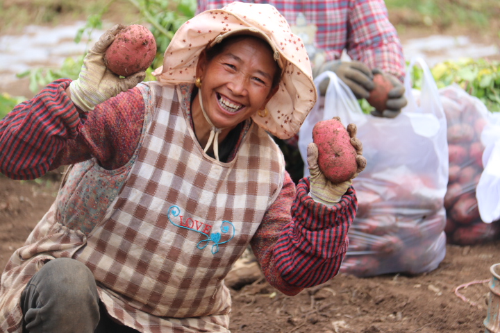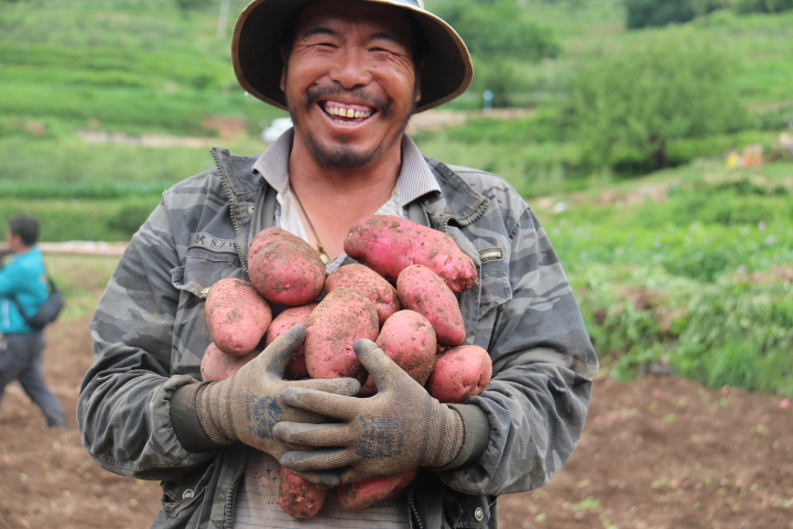 “以前我們種植傳統(tǒng)農(nóng)作物,收入低下,現(xiàn)在在政府的引導(dǎo)下,大規(guī)模種植洋芋,黨委政府還為我們解決銷售后顧之憂,收入成倍增加?!闭谔镩g勞作的村民孫諾江初笑呵呵地說。