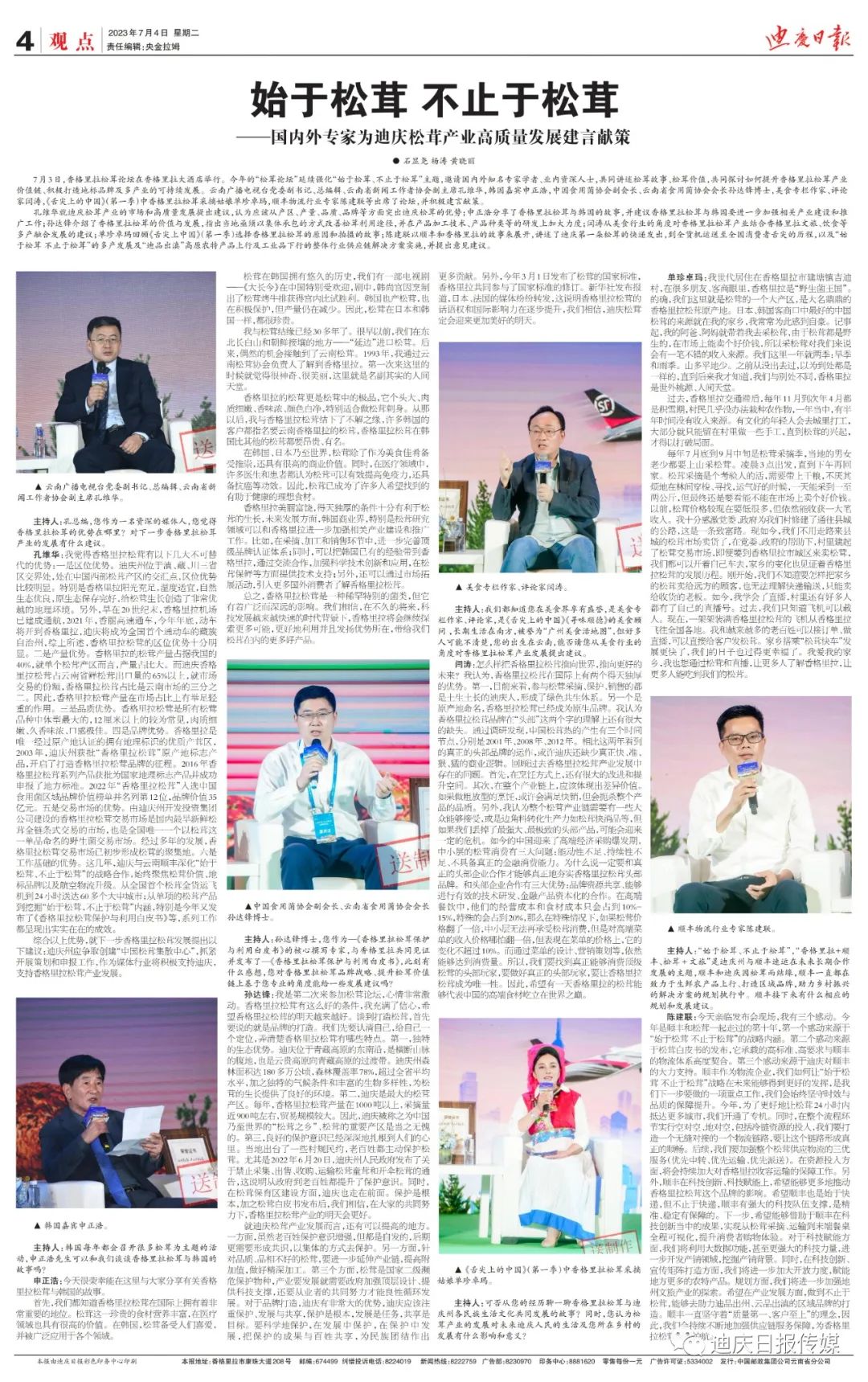 【關(guān)注】明日出版的《迪慶日?qǐng)?bào)》第四版將整版刊登國(guó)內(nèi)外專(zhuān)家對(duì)迪慶松茸產(chǎn)業(yè)高質(zhì)量發(fā)展給出的建議