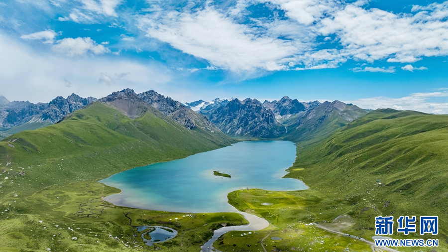 圖為在青海省果洛藏族自治州甘德縣境內(nèi)拍攝的夏日風(fēng)光(無人機(jī)照片)。新華網(wǎng) 宋忠勇 攝