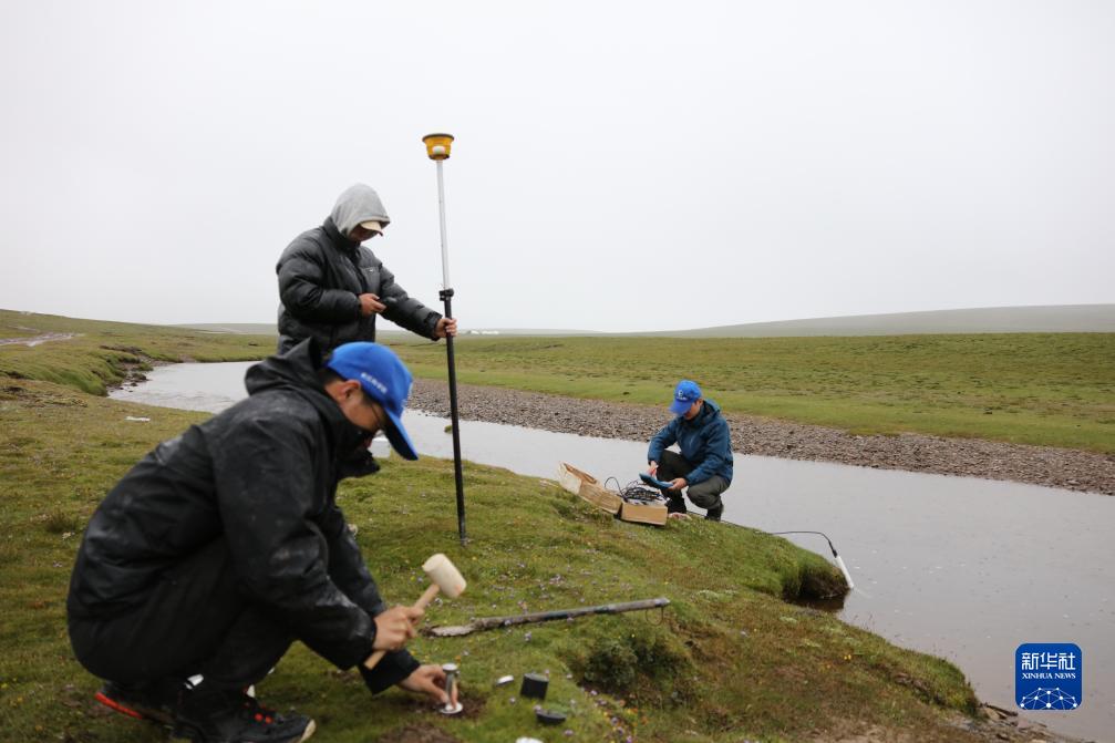 2023年江源綜合科學(xué)考察隊(duì)隊(duì)員在當(dāng)曲濕地進(jìn)行采樣和觀測(7月24日攝)。新華社記者 劉詩平 攝