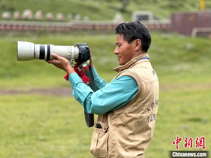 圖為大自然攝影隊隊員索南文斗正在拍攝照片。劉洋 攝