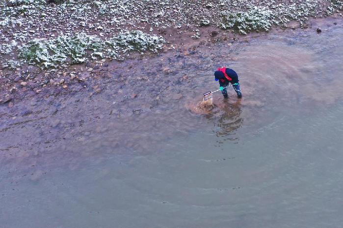 由水利部長(zhǎng)江水利委員會(huì)長(zhǎng)江科學(xué)院牽頭組織的2023年江源綜合科學(xué)考察正在長(zhǎng)江源進(jìn)行,其中魚耳石是新增研究?jī)?nèi)容。為了采集耳石,來(lái)自長(zhǎng)江科學(xué)院水環(huán)境所的科考隊(duì)員劉晗頂著大風(fēng)和雨雪,穿著下水褲和隊(duì)友在長(zhǎng)江源區(qū)多條河流中采集魚類樣本,經(jīng)常在冰冷的河水中守候十多分鐘。