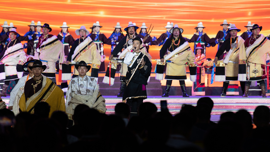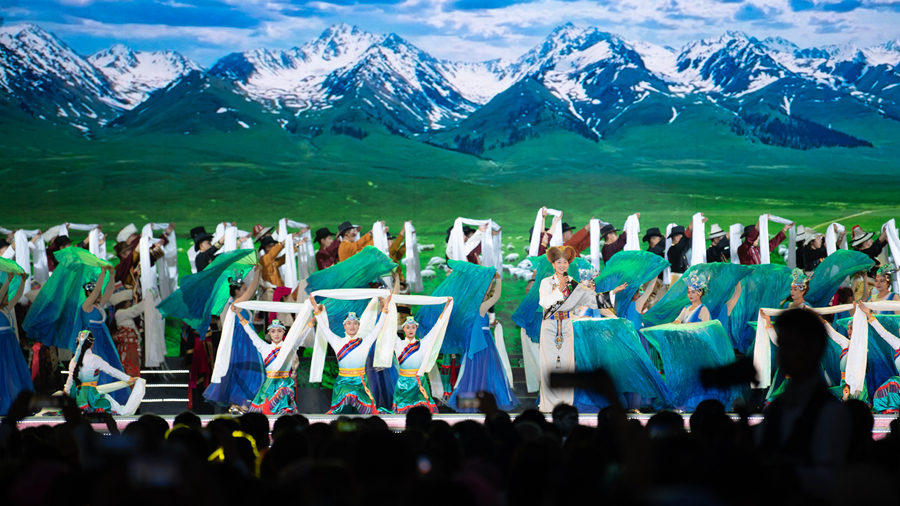 演出現(xiàn)場,燈光秀、曲藝表演、民族歌舞、服飾展演、情景朗誦等綜合藝術(shù)形式輪番上演,為現(xiàn)場觀眾獻(xiàn)上了一場精彩的視聽盛宴。其中,海南州藏族服飾藝術(shù)嘉年華是當(dāng)?shù)刈罹哂绊懥Φ拿褡逦幕放疲彩钱?dāng)?shù)厝罕娚钪械乃囆g(shù)盛會(huì)。活動(dòng)將傳統(tǒng)藏族服飾品牌與創(chuàng)新服飾時(shí)尚品牌融為一體,通過藏族傳統(tǒng)服飾和現(xiàn)代服飾展演,充分展示了海南州豐富多彩的藏族服飾文化魅力。