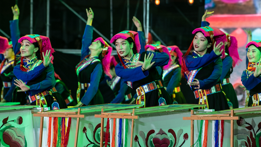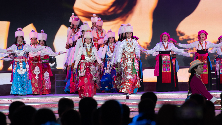 7月31日,慶祝青海省海南藏族自治州成立70周年藏族服飾藝術(shù)嘉年華迎賓晚會(huì)現(xiàn)場。
