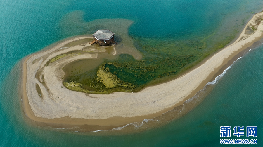 這是8月2日拍攝的青海湖二郎劍景區(qū)二郎劍半島。(無(wú)人機(jī)照片)新華網(wǎng) 郭勇良 攝