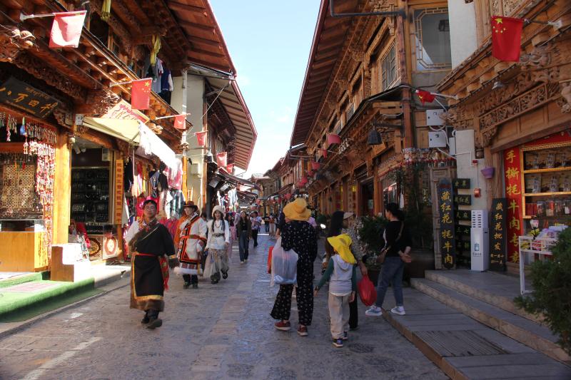 進入暑期,獨克宗古城憑借獨特的藏族風情和豐富的民俗文化,吸引眾多游客前來體驗。據(jù)悉,7月以來,獨克宗古城接待游客量達121.4367萬人次,同比增長21.28%。香格里拉市獨克宗管理有限公司嚴格落實“限量、錯峰”要求,完善綜合服務(wù)工作,營造平安、舒適、和諧的旅游環(huán)境。
