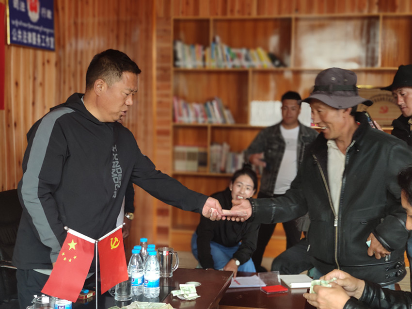 “振業(yè)振興新征程 旺達(dá)村分紅大會(huì)”的橫幅在村活動(dòng)中心會(huì)議室內(nèi)鮮艷顯眼,村民們興高采烈,早早地等候在這里領(lǐng)取分紅金。“今年流轉(zhuǎn)費(fèi)總計(jì)130000元,每戶(hù)可分紅5200元。”分紅儀式上,上木拉黨委書(shū)記格絨次乃向村民們介紹了旺達(dá)村房屋流轉(zhuǎn)、荒地收益情況和民宿產(chǎn)業(yè)下一步規(guī)劃。在場(chǎng)村民臉上無(wú)不洋溢著幸福的笑容,高興地鼓起了掌。