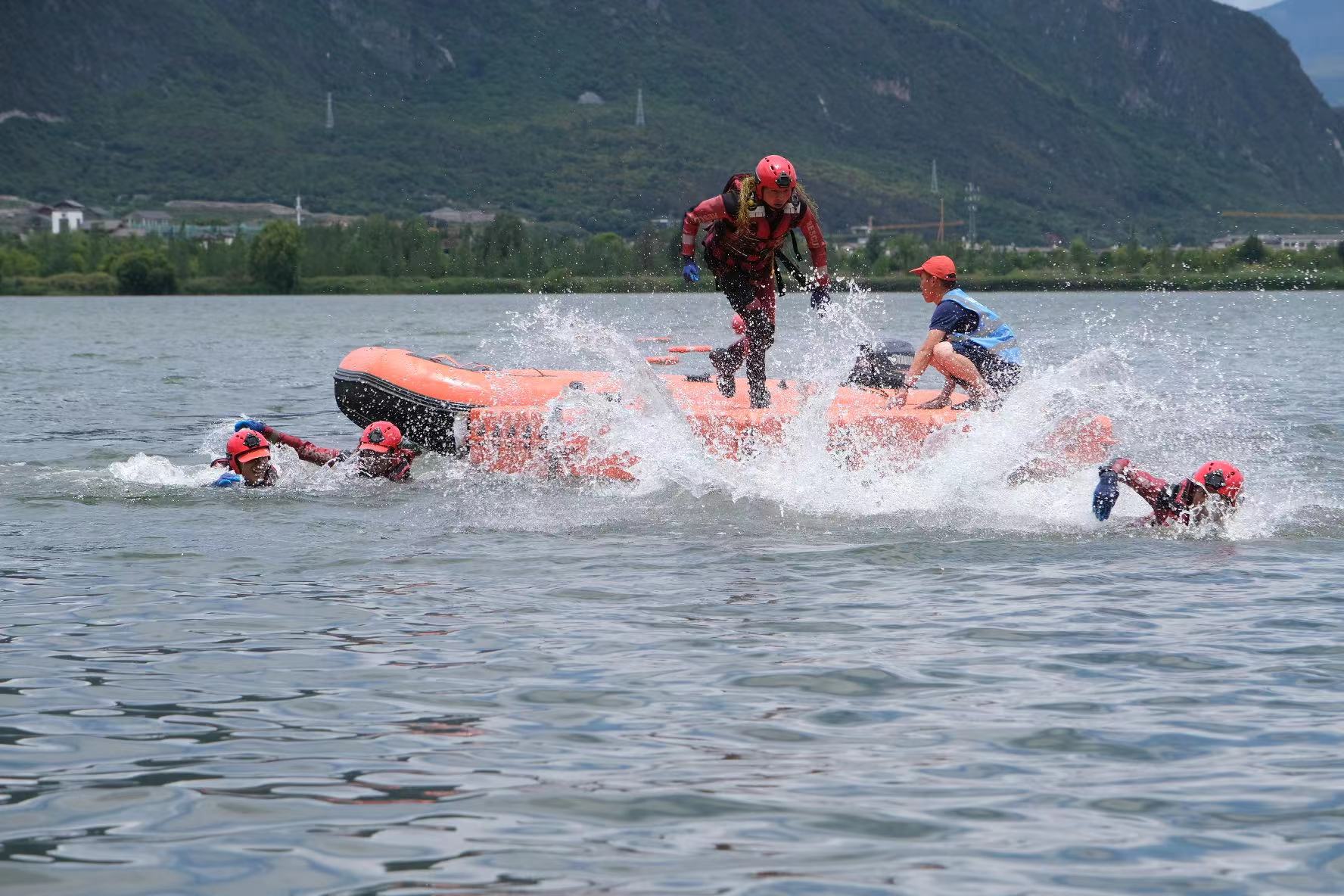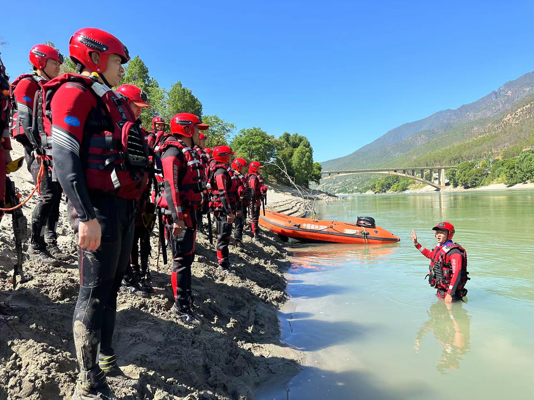 此次演練模擬我州多地因連續(xù)降雨,導(dǎo)致河水水位上漲,洪水沖毀道路,造成附近居民出行困難,距水庫(kù)較近房屋被洪水淹沒(méi)形成被水圍困的孤島,情況緊急。