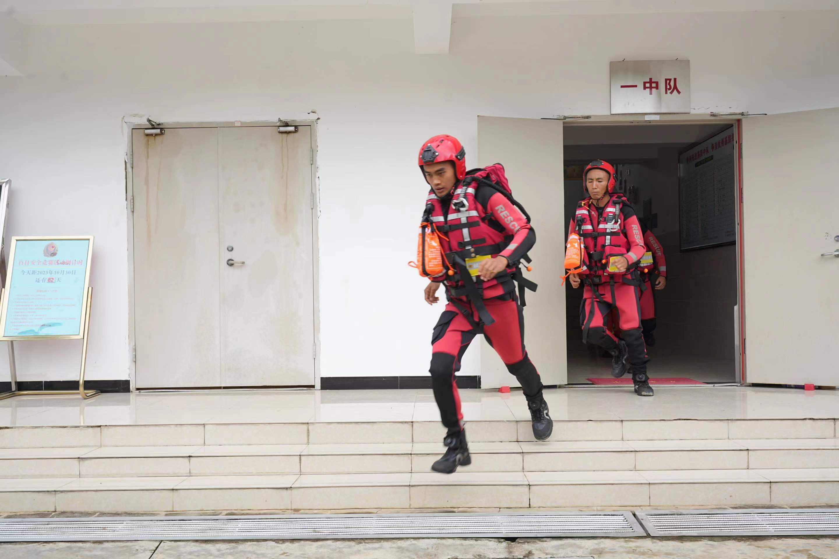 隨著警報(bào)聲響起,參戰(zhàn)隊(duì)員迅速更換戰(zhàn)斗著裝,攜帶戰(zhàn)斗裝具集結(jié)。到達(dá)模擬任務(wù)區(qū)域后,隊(duì)伍針對(duì)現(xiàn)場(chǎng)實(shí)際情況制定救援計(jì)劃,奔赴救援現(xiàn)場(chǎng)開(kāi)展救援行動(dòng)。圖為演練現(xiàn)場(chǎng)。
