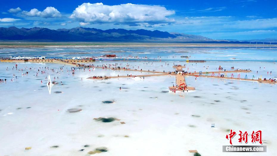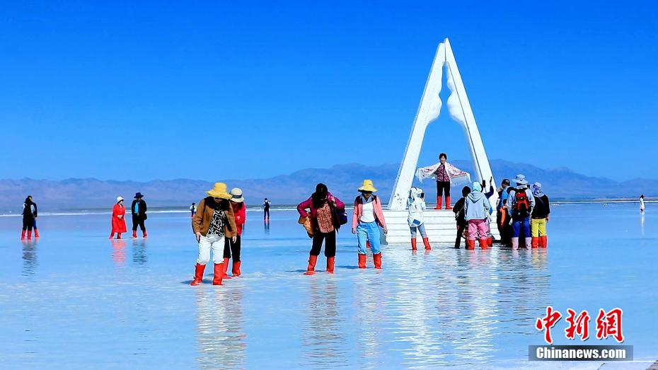 圖為游客在茶卡鹽湖游覽。茶卡鹽湖景區(qū) 供圖