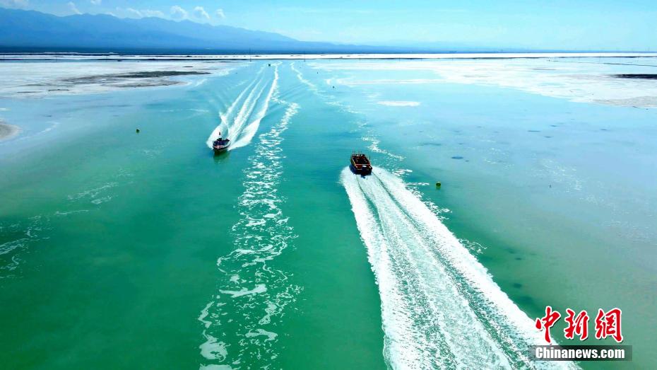 游艇在茶卡鹽湖中穿梭。茶卡鹽湖景區(qū) 供圖