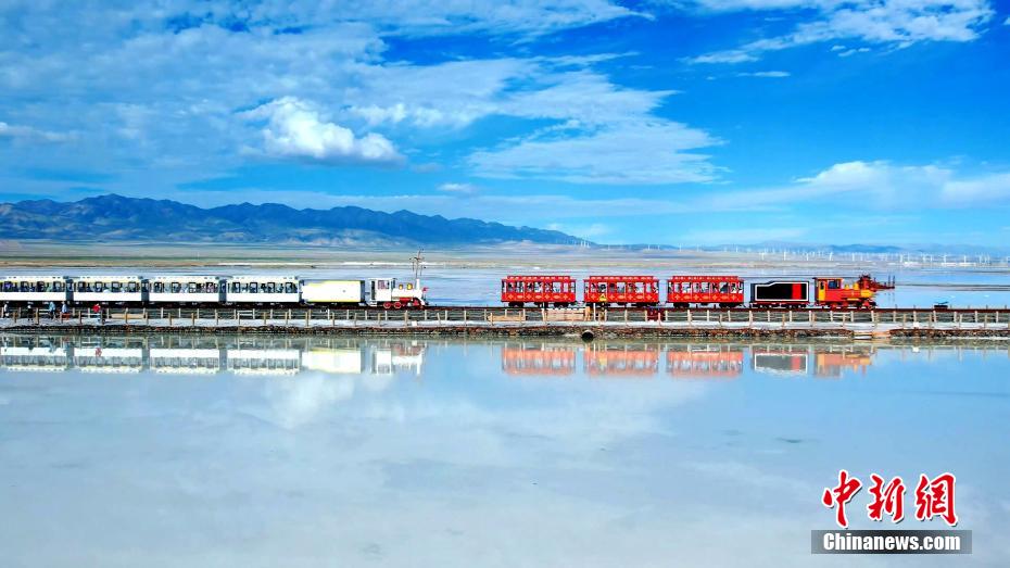 茶卡鹽湖倒映出的游覽小火車。茶卡鹽湖景區(qū) 供圖