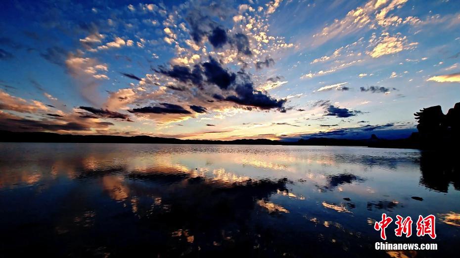 茶卡鹽湖倒影的落日余暉。茶卡鹽湖景區(qū) 供圖