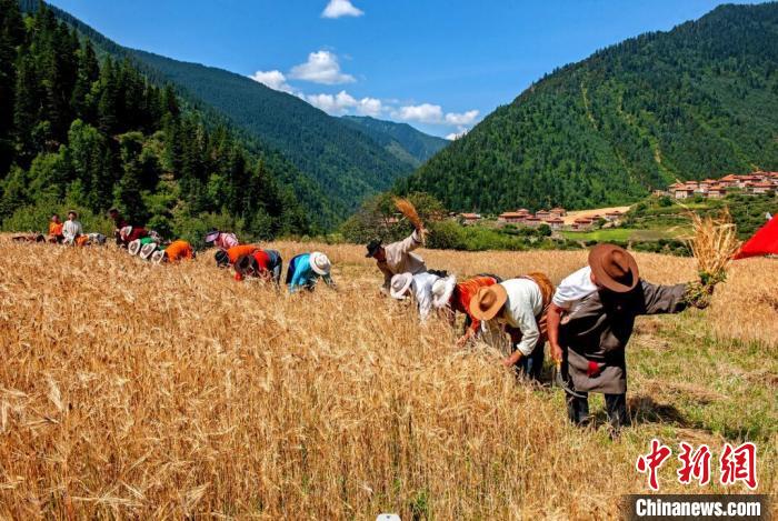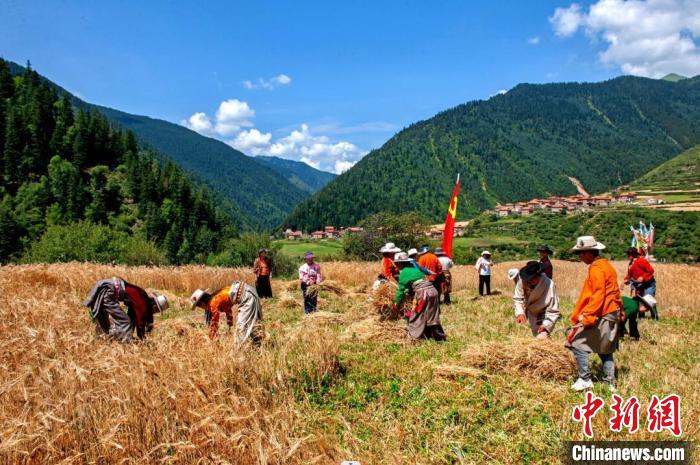 風(fēng)吹麥浪溢清香,田間地頭收割忙。眼下,四川阿壩州金川縣俄熱鄉(xiāng)成片的高原黑青稞迎來收獲季。村間沿路的田地里,黑青稞在微風(fēng)吹拂下如波濤翻滾,泛著金光。高處俯望,遠處群山連綿,近處麥浪起伏,沃野千里,勾勒出一幅“產(chǎn)業(yè)興、百姓富、生態(tài)美”的鄉(xiāng)村振興美麗畫卷。