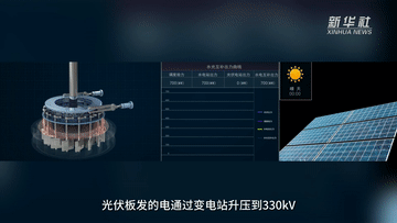 光伏板發(fā)的電通過(guò)變電站升壓到330KV,經(jīng)過(guò)50多公里長(zhǎng)的高壓輸電線路輸送到龍羊峽水電站,水電站再根據(jù)總的發(fā)電任務(wù)和光伏實(shí)時(shí)發(fā)電量調(diào)節(jié)水電,實(shí)現(xiàn)“削峰填谷”,最終并網(wǎng)向外輸送。