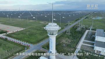 一條條高壓輸電線連接著塔拉灘的“光”與龍羊峽的“水”,實(shí)現(xiàn)塔拉灘上經(jīng)濟(jì)效益和生態(tài)效益的共贏。
