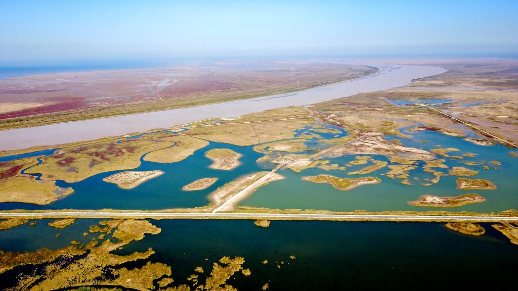 近年來,黃河三角洲國家級自然保護(hù)區(qū)建成“引、輸、蓄、排”科學(xué)生態(tài)補(bǔ)水體系,同時著力構(gòu)建“河—陸—灘—?!边B通體系,連通水系115公里,疏通潮溝76公里,恢復(fù)黃河與海洋的水文連通。原先的光板地、鹽堿灘,變成了水草豐茂、生物多樣性富集的大濕地。