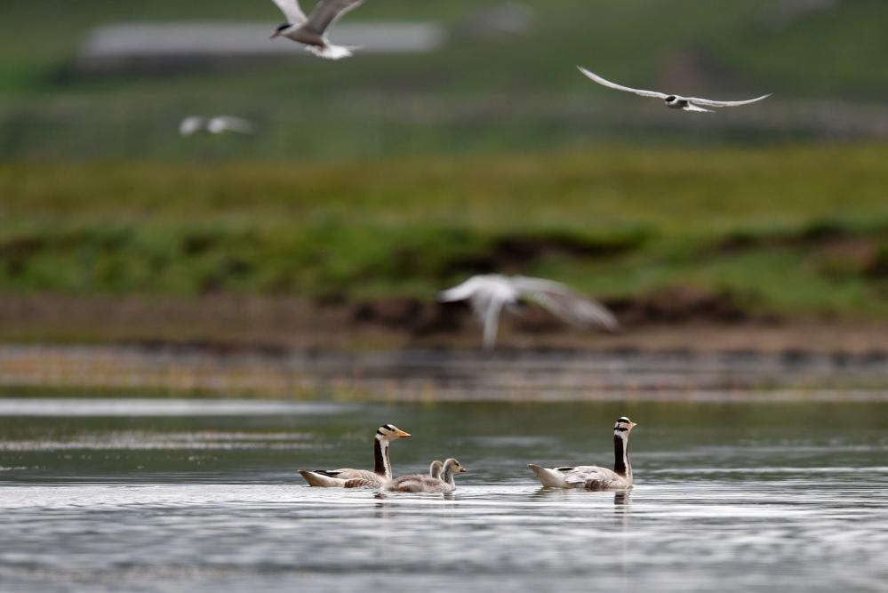 這是在甘肅尕海則岔國家級自然保護(hù)區(qū)的尕海濕地上拍攝的斑頭雁。 新華社記者 張可任 攝
