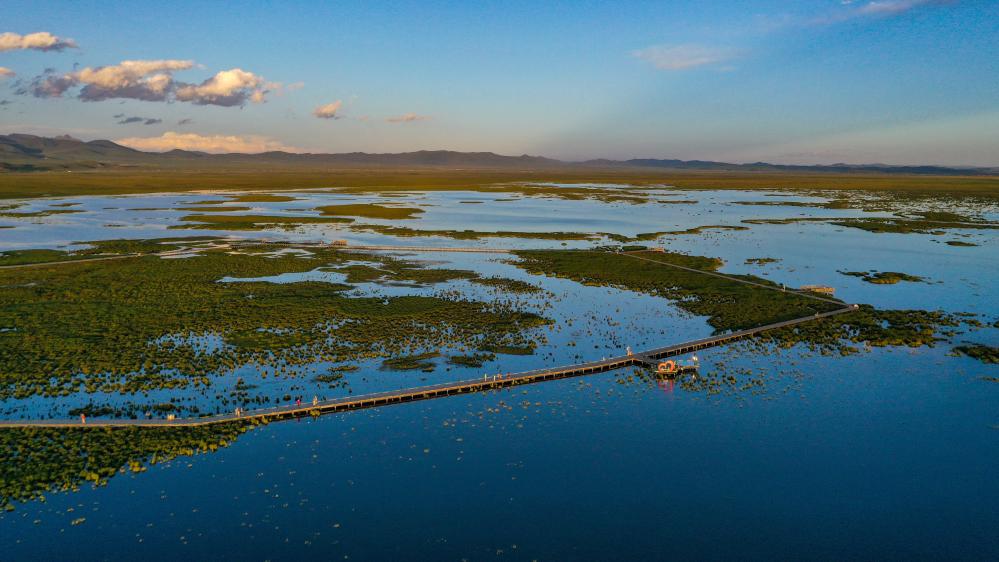 除了治沙,生態(tài)治理的另一個重點是濕地保護。據(jù)阿壩州水務局總工程師龔智成介紹,以若爾蓋濕地為代表的川西北濕地,流入黃河的水占黃河全流域多年平均徑流量的8.8%。因氣候變化、歷史上為發(fā)展畜牧業(yè)“開溝排水”“向濕地要草地”等不當做法,濕地一度退化嚴重。若爾蓋濕地最大的湖泊花湖,曾一度萎縮至215公頃。