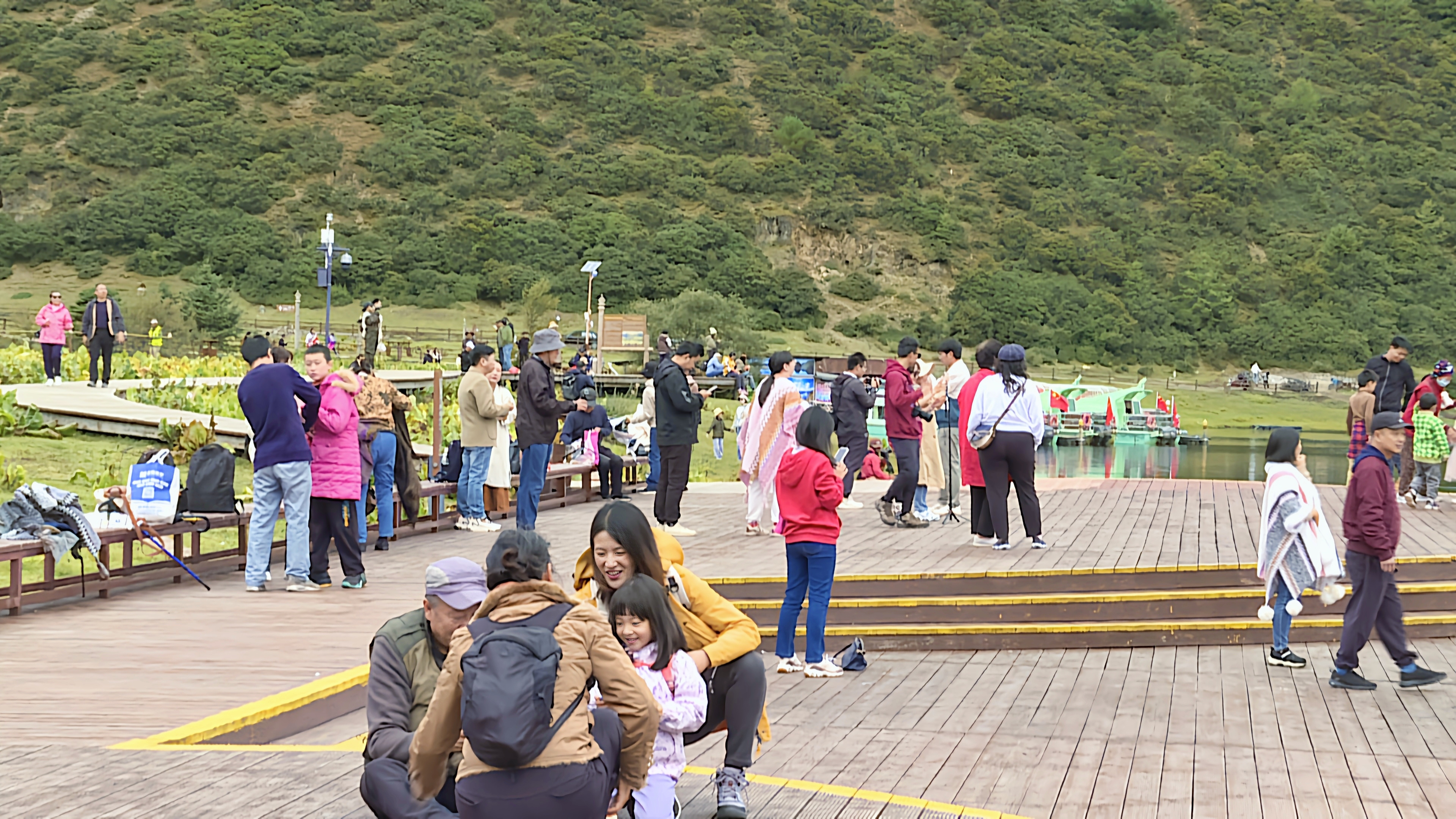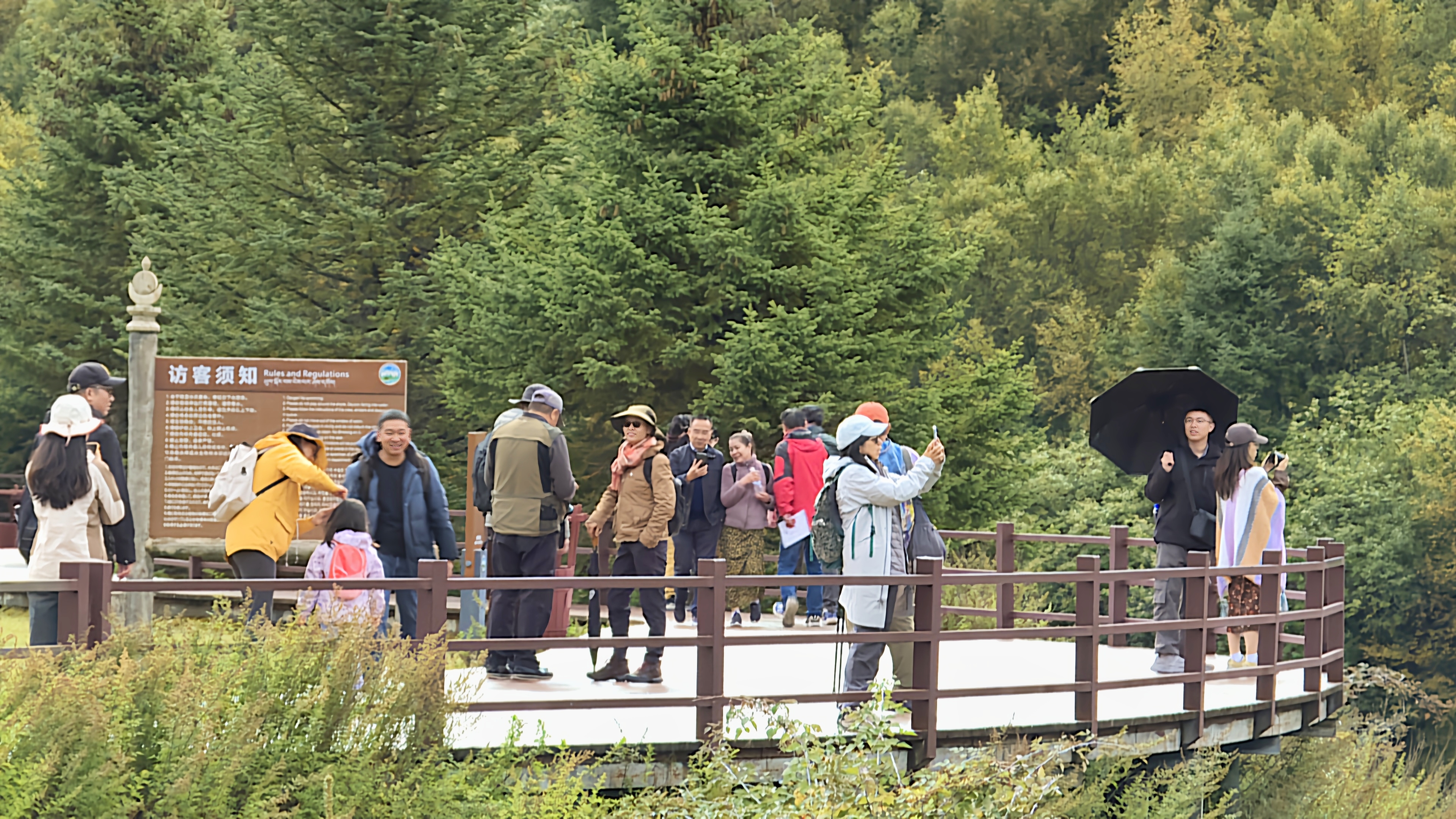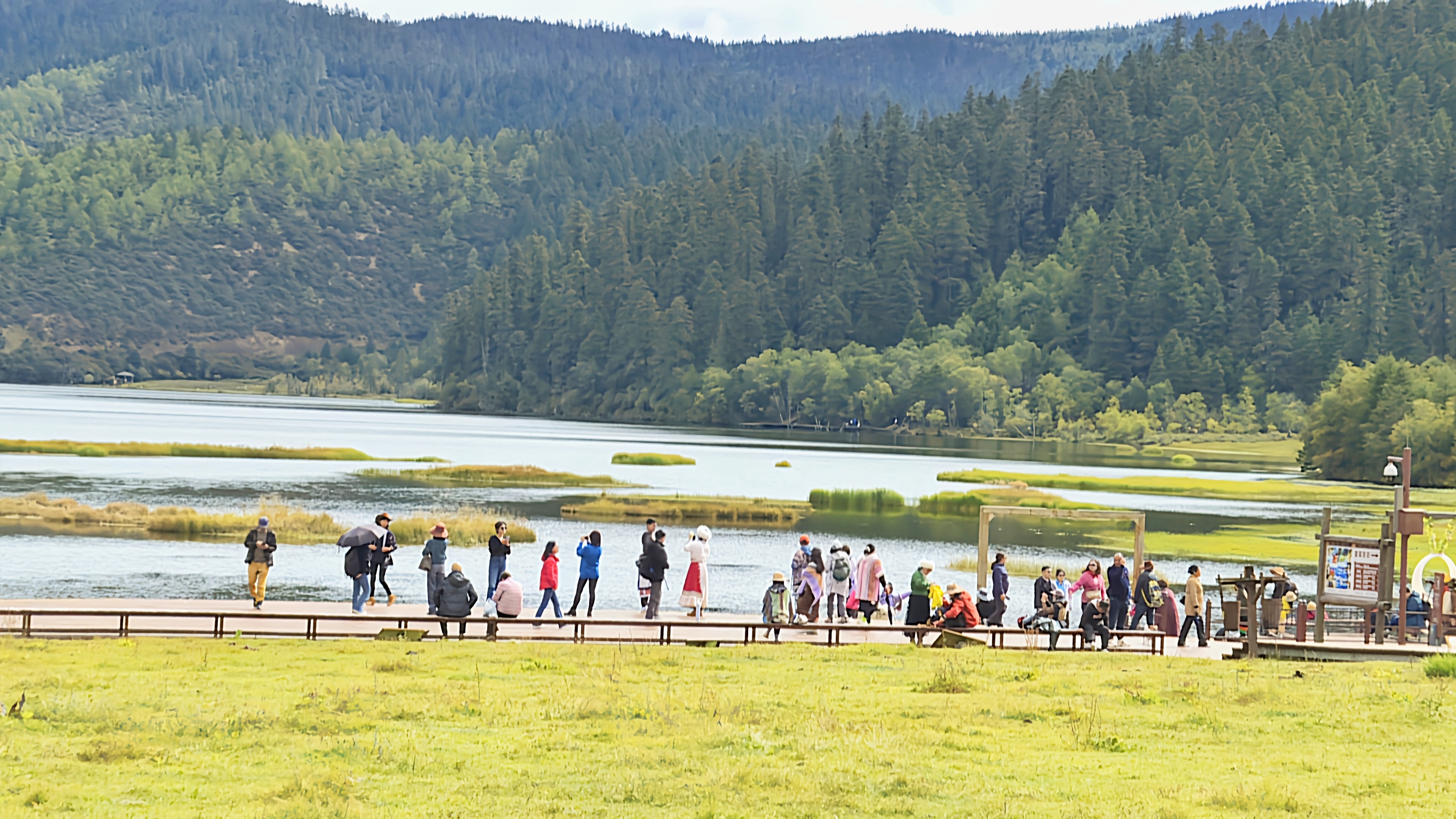 秋日的普達(dá)措國家公園層林盡染、色彩斑斕,高山草甸、原始森林與湖泊濕地構(gòu)成了一幅幅美麗的畫卷,屬都湖棧道上人群熙熙攘攘?!拔沂堑谝淮蝸硐愀窭锢糜?,香格里拉給我的感覺就是,這里的生態(tài)環(huán)境保護得很好,綠水青山,很值得來游玩?!庇慰退闻勘硎?。