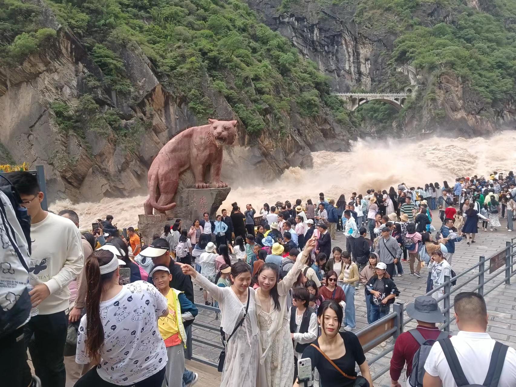 日前,虎跳峽景區(qū)游人爆滿,各項旅游接待指標(biāo)全面提升?!澳壳坝慰腿藬?shù)還在持續(xù)攀升,預(yù)計國慶節(jié)中期到達(dá)頂峰?!本皡^(qū)工作人員介紹道。假期前三天景區(qū)已接待游客3.11萬人。