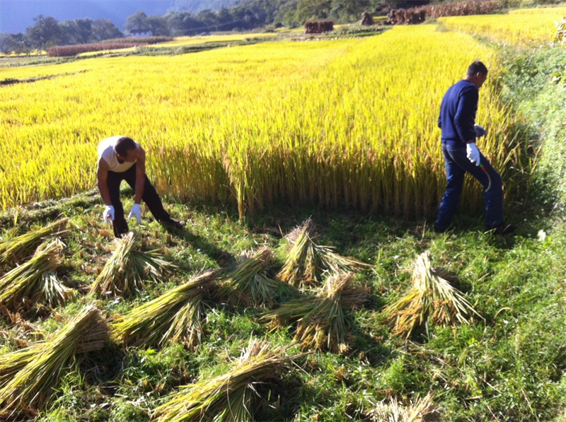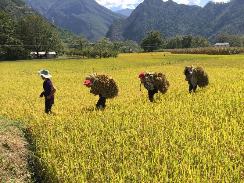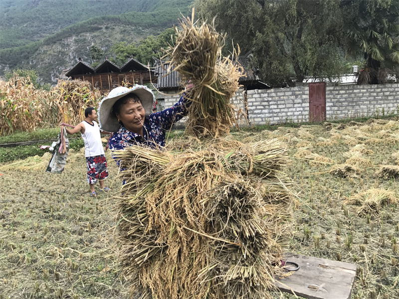 近日,維西縣塔城鎮(zhèn)其宗村村民忙著收割稻谷。