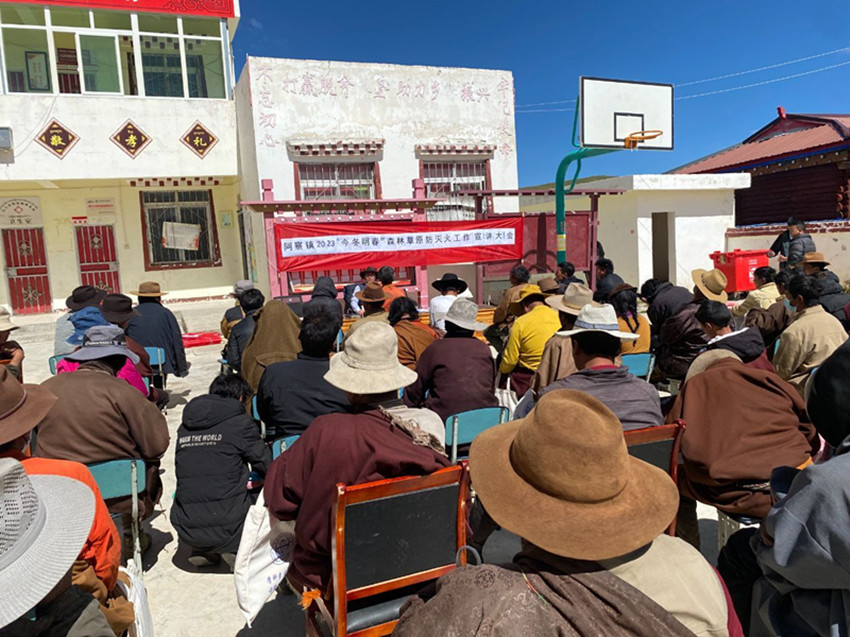 入秋以來(lái),隨著氣溫下降、濕度減弱,森林、草原、濕地的植被含水率降低、干燥易燃,戶(hù)外旅游、農(nóng)事用火等野外火源管理難度進(jìn)一步增大,也讓秋冬季森林草原防火工作壓力陡增。“大家一定要記住,進(jìn)山不要帶火種??吹接谢?、有煙馬上上報(bào)……”在白玉縣阿察鎮(zhèn)開(kāi)展的2023年“今冬明春”森林草原防滅火政策宣講大會(huì)上,宣講員用通俗易懂的本土方言向村民們反復(fù)叮囑防火注意事項(xiàng)。連日來(lái),該鎮(zhèn)分別組織人員深入轄區(qū)四個(gè)行政村開(kāi)展宣講大會(huì),宣傳森林草原防滅火政策知識(shí),同時(shí)以案示警,通過(guò)宣講森林草原火災(zāi)典型事例,向群眾普及違反森林草原防滅火相關(guān)法律法規(guī)的嚴(yán)重后果,著力提升大家的防火安全意識(shí),最大限度地預(yù)防和減少森林火災(zāi)的發(fā)生。