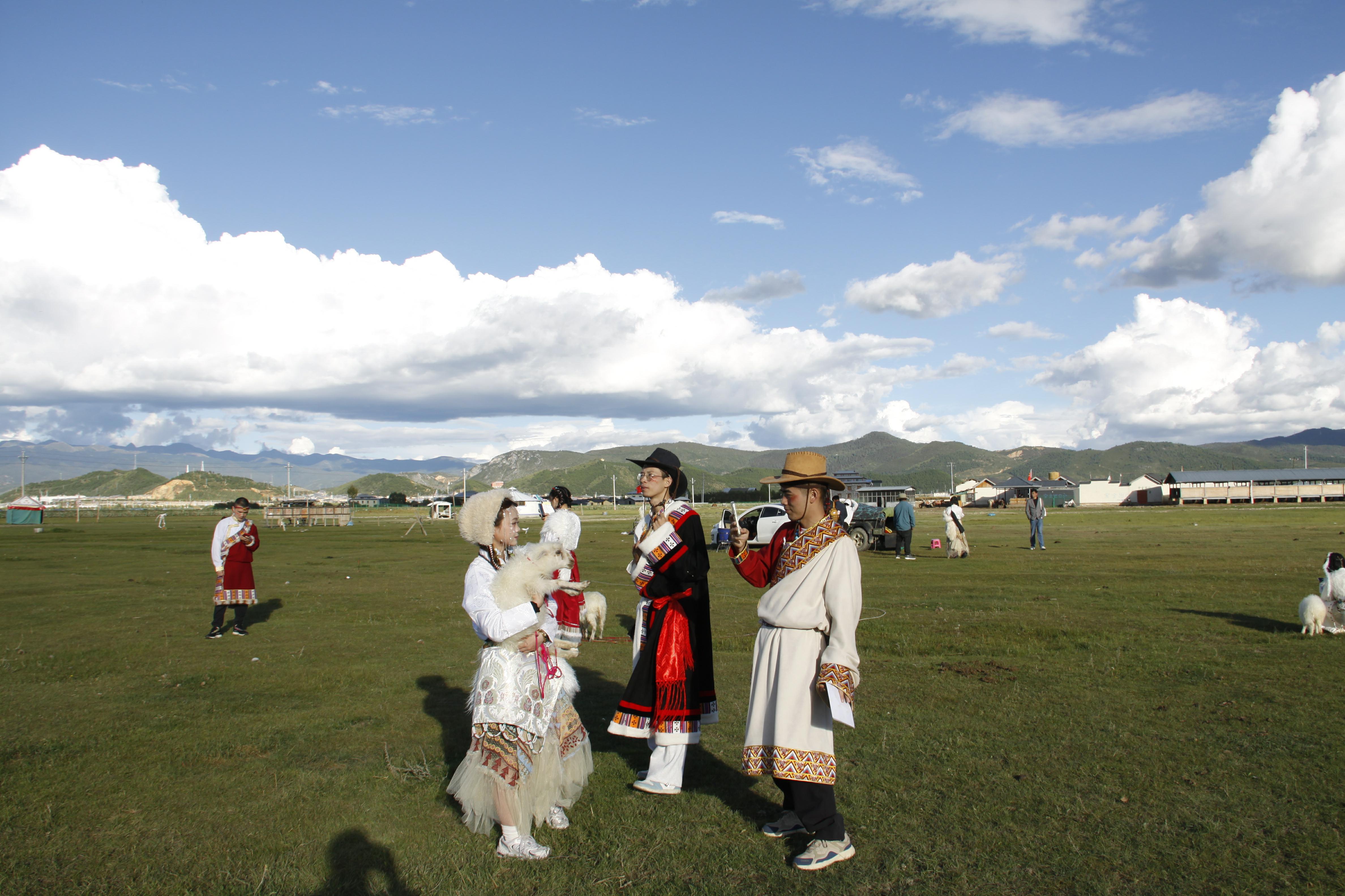時(shí)下,迪慶高原秋景如畫(huà)。眾多游客紛紛到香格里拉市建塘草原打卡,在藍(lán)天白云下,有的騎馬賞景,有的身著民族服裝旅拍,還有的與小綿羊親密接觸,構(gòu)成了一道道亮麗的風(fēng)景線。